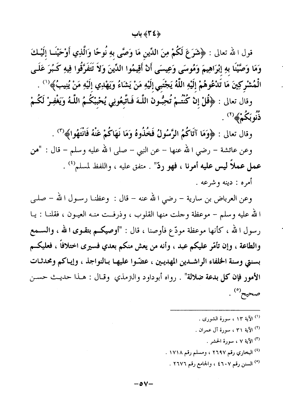 وقال تعالى: {وَمَا آَتَاكُمُ الرَّسُولُ فَخُذُوهُ وَمَا نَهَاكُمْ عَنْهُ فَانْتَهُوا} [الحشر: 7].
