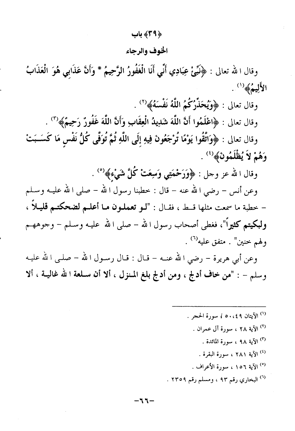 وقال الله تعالى: {نَبِّئْ عِبَادِي أَنِّي أَنَا الْغَفُورُ الرَّحِيمُ * وَأَنَّ عَذَابِي هُوَ الْعَذَابُ الْأَلِيمُ} [الحجر: 49 - 50].