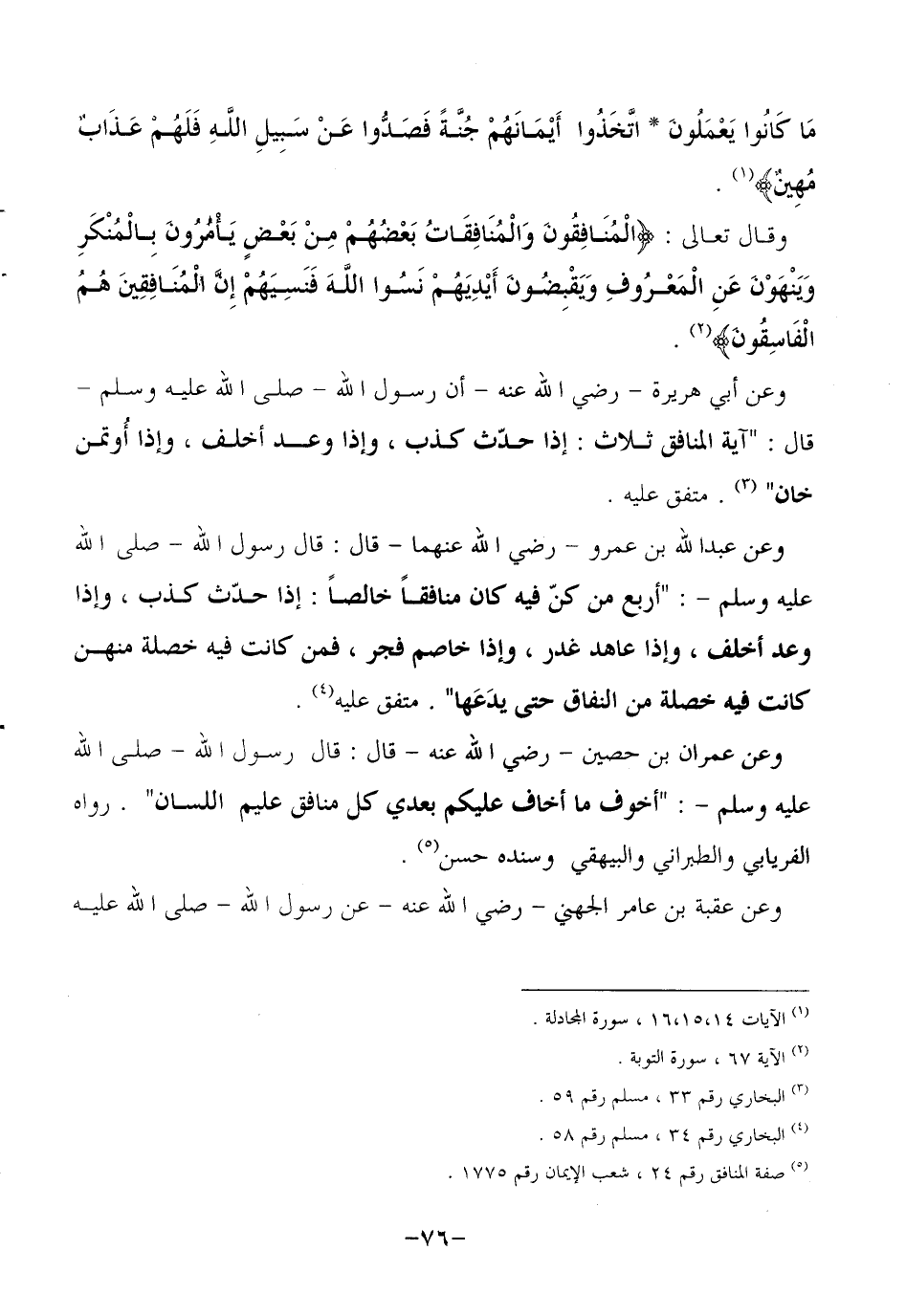 (¬3) صفة المنافق (رقم 24)، شعب الإيمان (رقم 1775).
