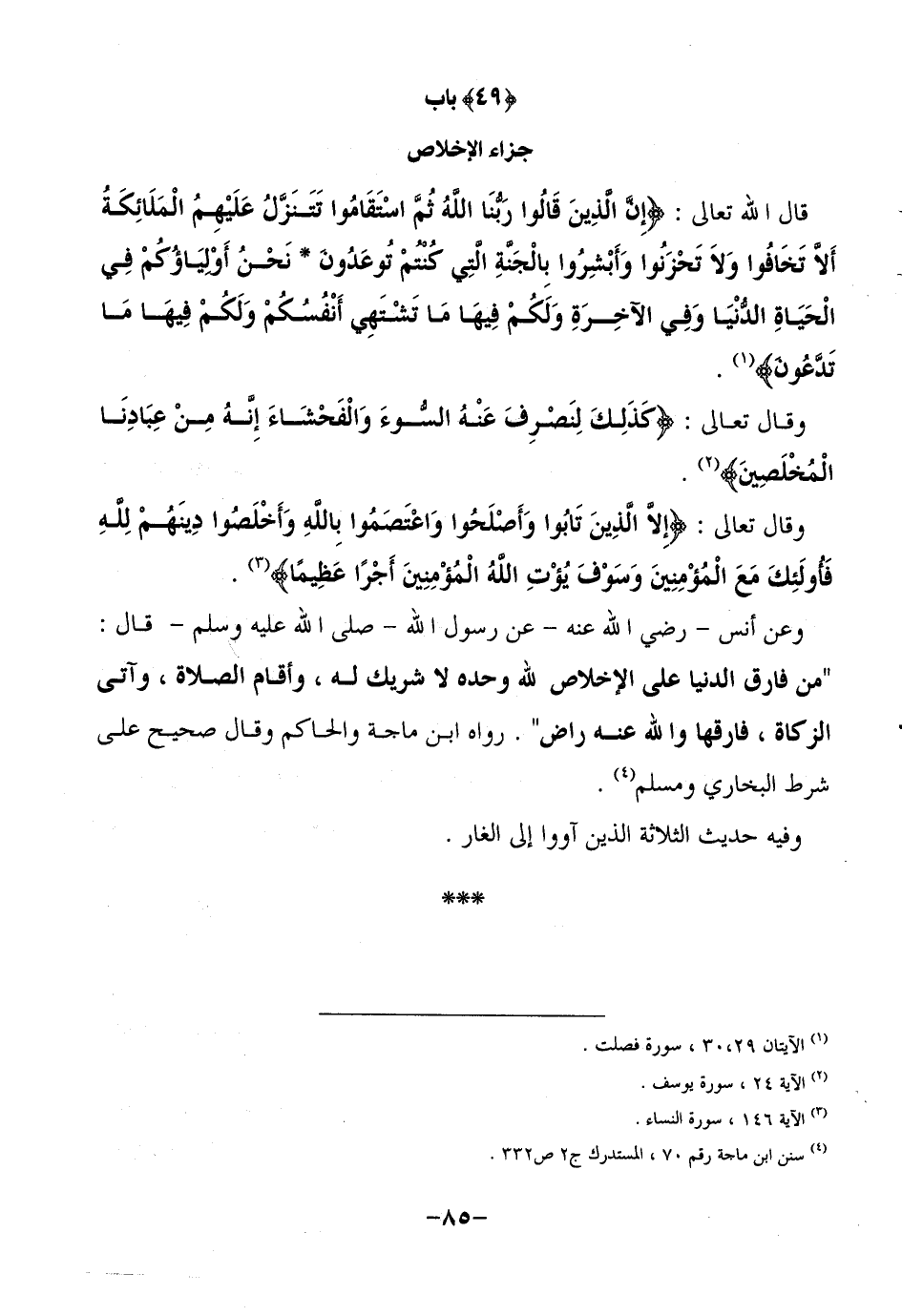 وقال تعالى: {كَذَلِكَ لِنَصْرِفَ عَنْهُ السُّوءَ وَالْفَحْشَاءَ إِنَّهُ مِنْ عِبَادِنَا الْمُخْلَصِينَ} [يوسف: 24].