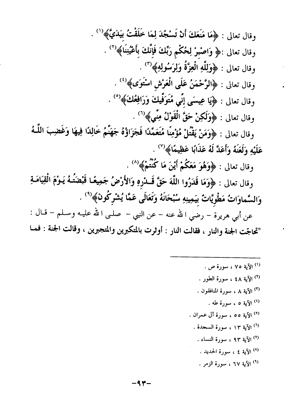 وقال تعالى: {وَمَا قَدَرُوا اللَّهَ حَقَّ قَدْرِهِ وَالْأَرْضُ جَمِيعًا قَبْضَتُهُ يَوْمَ الْقِيَامَةِ وَالسَّماوَاتُ مَطْوِيَّاتٌ بِيَمِينِهِ سُبْحَانَهُ وَتَعَالَى عَمَّا يُشْرِكُونَ} [الزمر: 67].