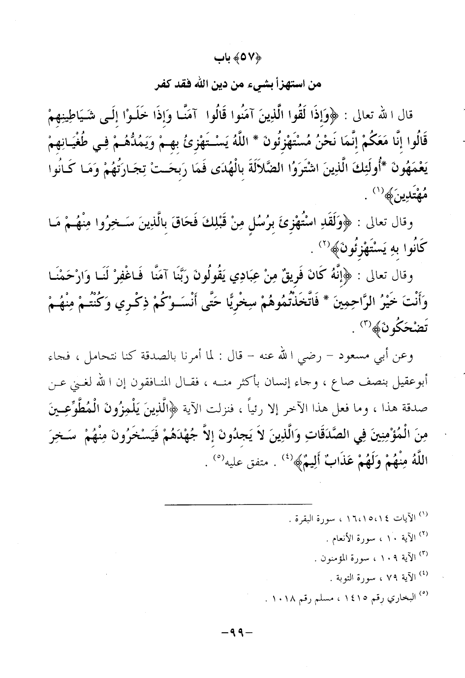 وقال تعالى: {إِنَّهُ كَانَ فَرِيقٌ مِنْ عِبَادِي يَقُولُونَ رَبَّنَا آَمَنَّا فَاغْفِرْ لَنَا وَارْحَمْنَا وَأَنْتَ خَيْرُ الرَّاحِمِينَ * فَاتَّخَذْتُمُوهُمْ سِخْرِيًّا حَتَّى أَنْسَوْكُمْ ذِكْرِي وَكُنْتُمْ مِنْهُمْ تَضْحَكُونَ} [المؤمنون: 109 - 110].