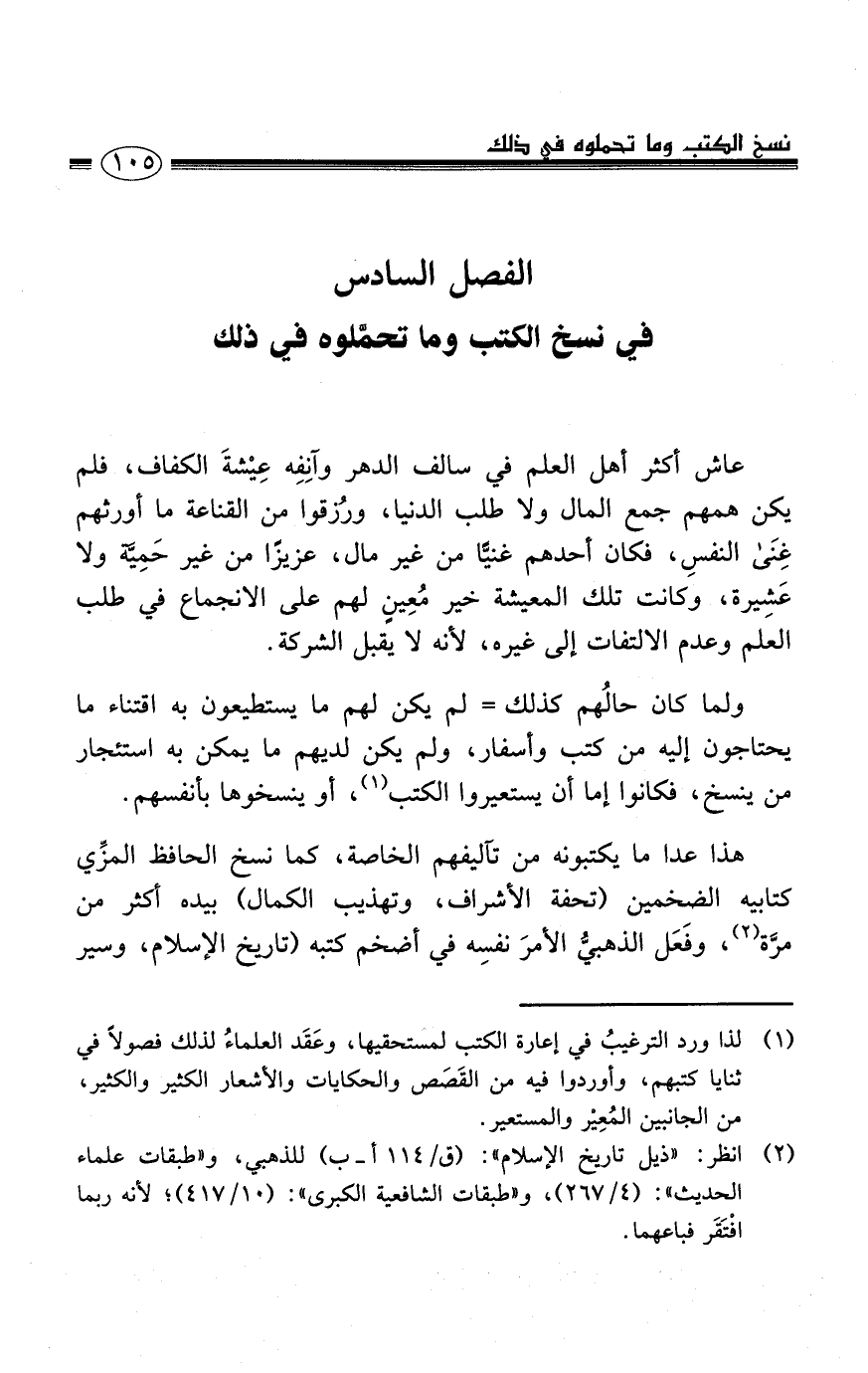 الفصل السادس: في نسخ الكتب وما تحمَّلوه في ذلك