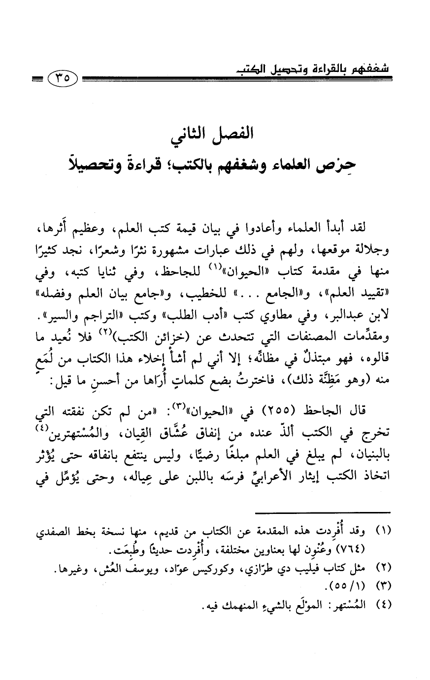 الفصل الثاني: حِرْص العلماء وشغفهم بالكتب، قراءةً وتحصيلاً
