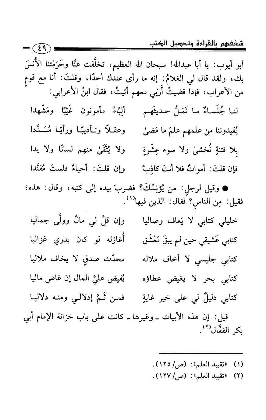 كتابي جليسي لا أخاف ملاله ... محدّث صدقٍ لا يخاف ملاليا