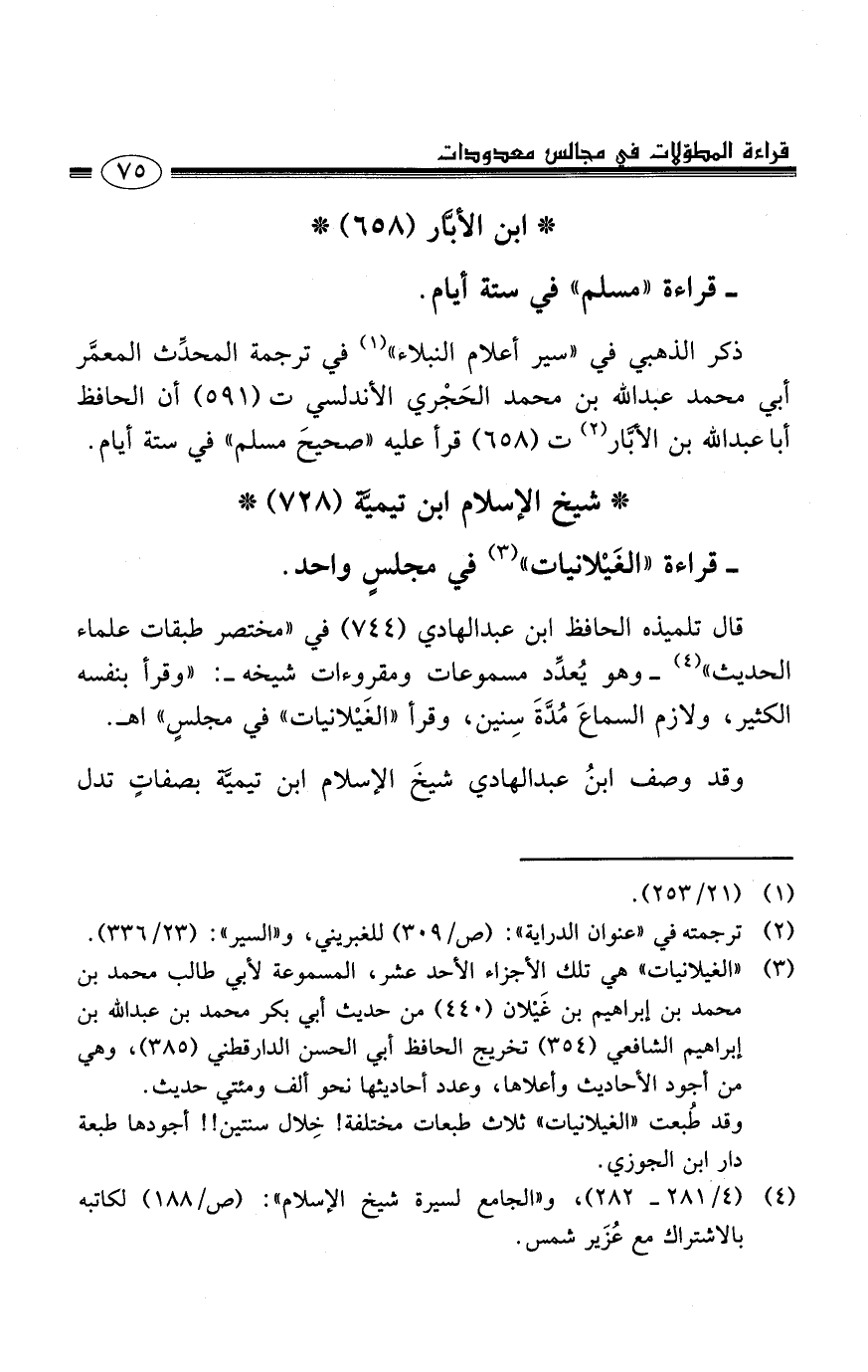 - قراءة ((الغَيْلانيات)) (3) في مجلسٍ واحد.