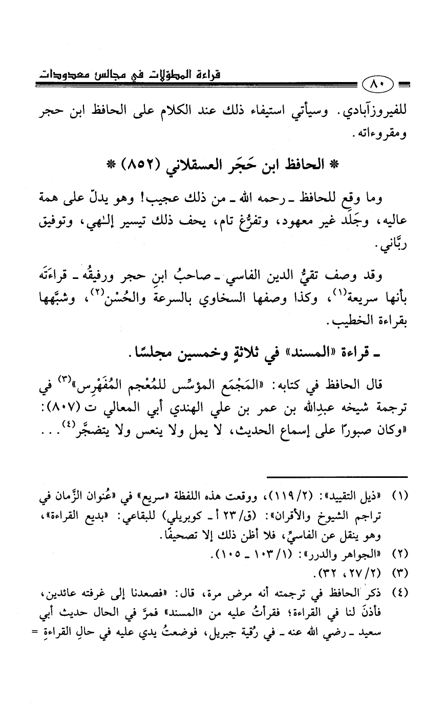 وما وقع للحافظ -رحمه الله- من ذلك عجيب! وهو يدلّ على همة عاليه، وجَلَد غير معهود، وتفرُّغ تام، يحف ذلك تيسير إلهي، وتوفيق ربَّاني.