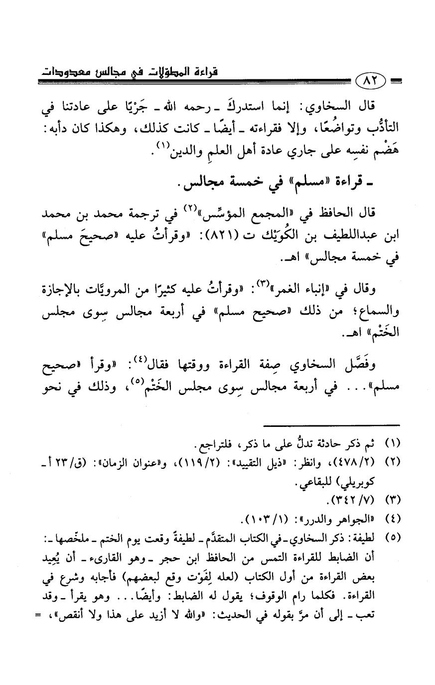 - قراءة ((مسلم)) في خمسة مجالس.