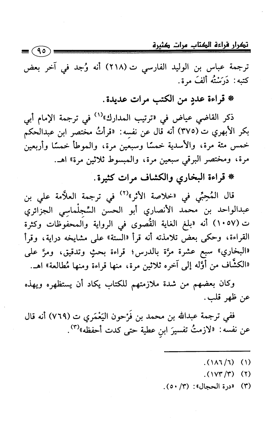 ترجمة عباس بن الوليد الفارسي ت (218) أنه وُجد في آخر بعض كتبه: دَرَسْتُه ألفَ مرة.
