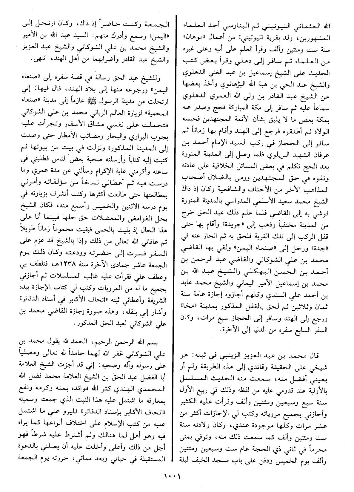 الرباني محمد بن علي الشوكاني فتحملت على نفسي مشاق الأسفار وتجرأت عليه بجوب البراري