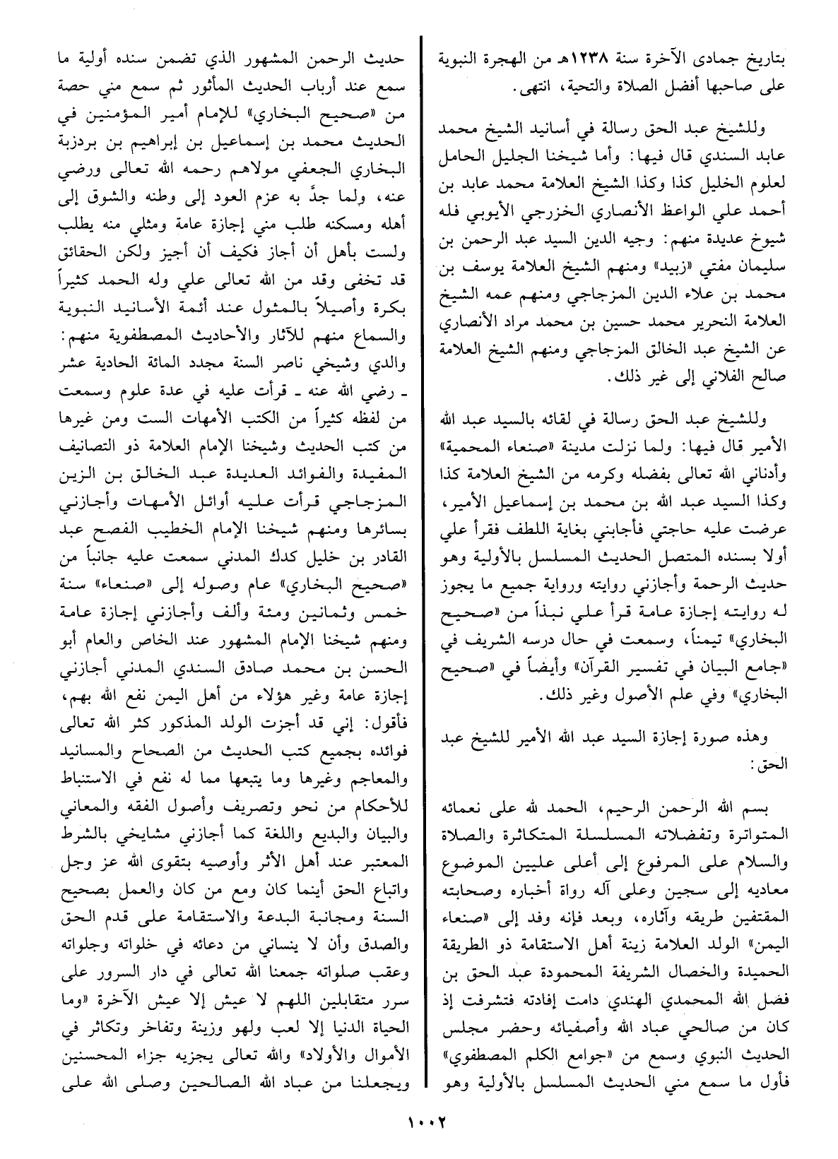 الحميدة والخصال الشريفة المحمودة عبد الحق بن محمد فضل الله المحمدي الهندي دامت إفاداته
