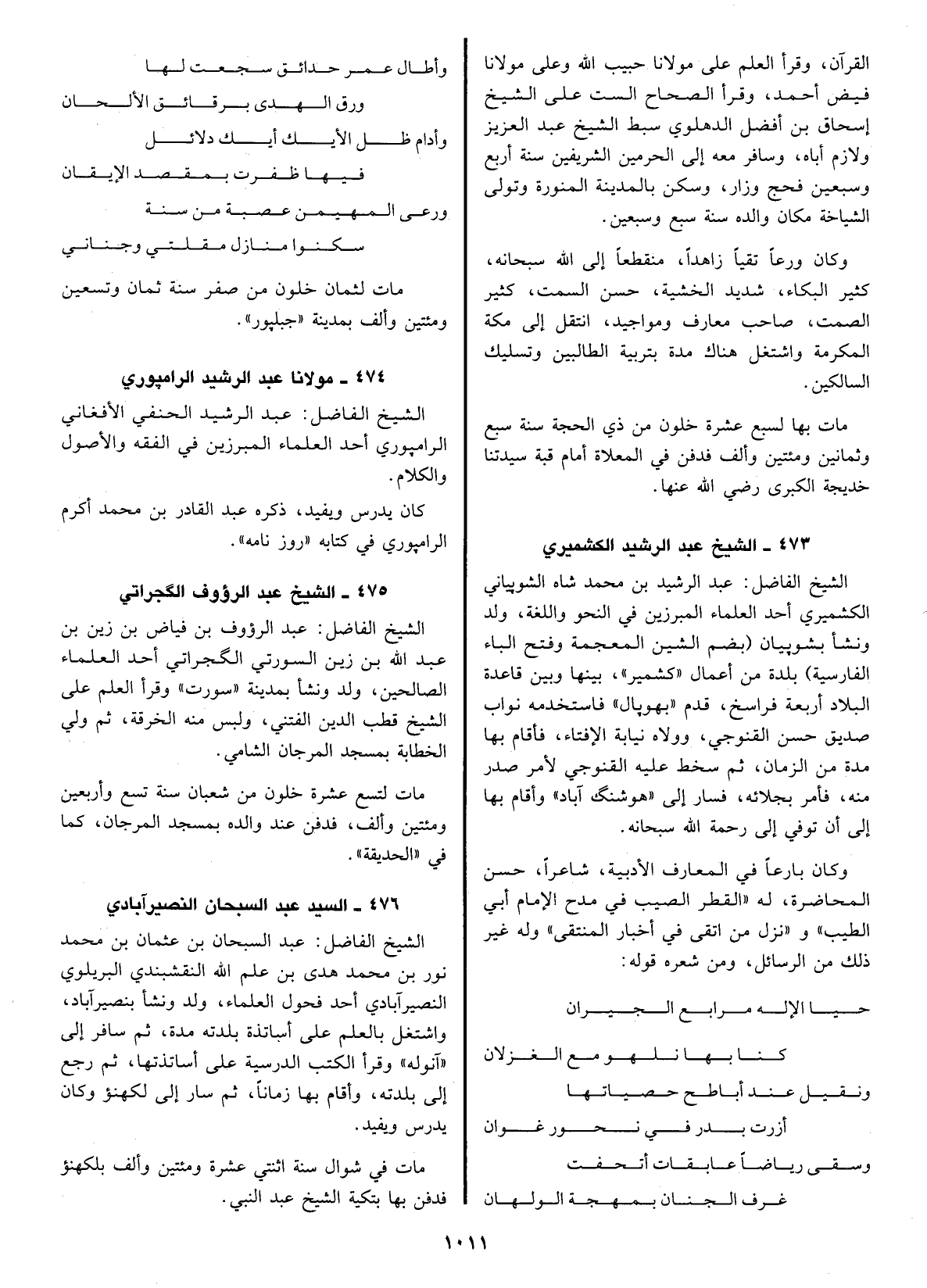 الشيخ الفاضل عبد السبحان بن عثمان بن محمد نور بن محمد هدى بن علم الله النقشبندي البريلوي