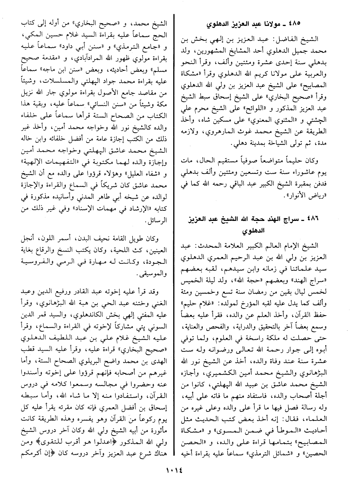سراج الهند حجة الله الشيخ عبد العزيز الدهلوي