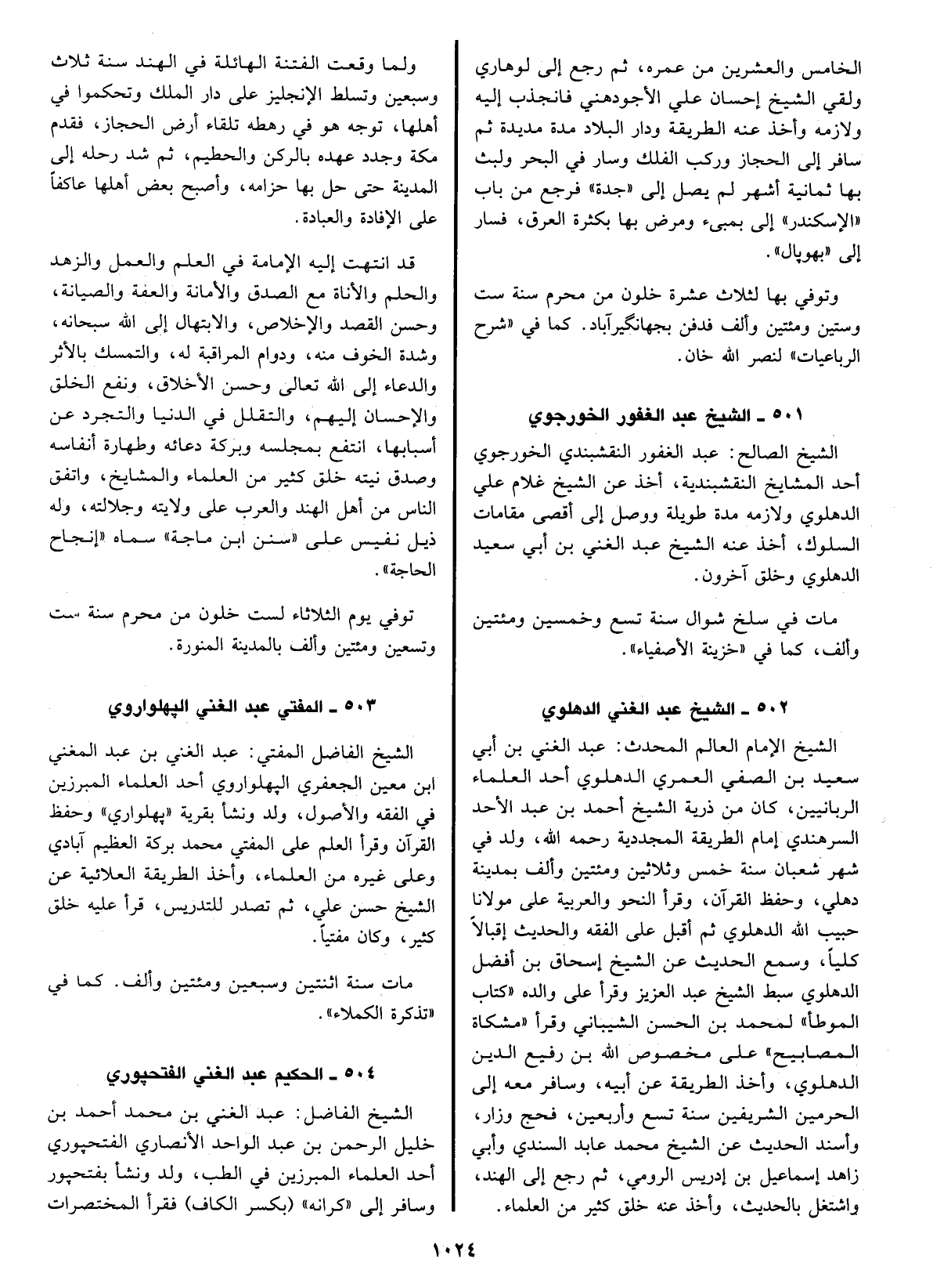 الشيخ الإمام العالم المحدث عبد الغني بن أبي سعيد بن الصفي العمري الدهلوي أحد العلماء