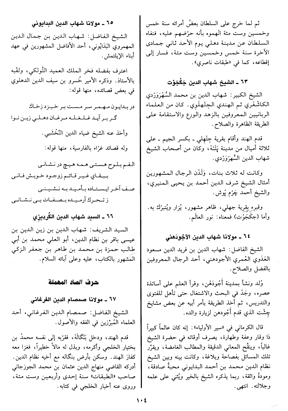 نظام الدين محمد بن أحمد البدايوني محبة صادقة ومودة واثقة، ربما يذكره الشيخ بالخير ويثني