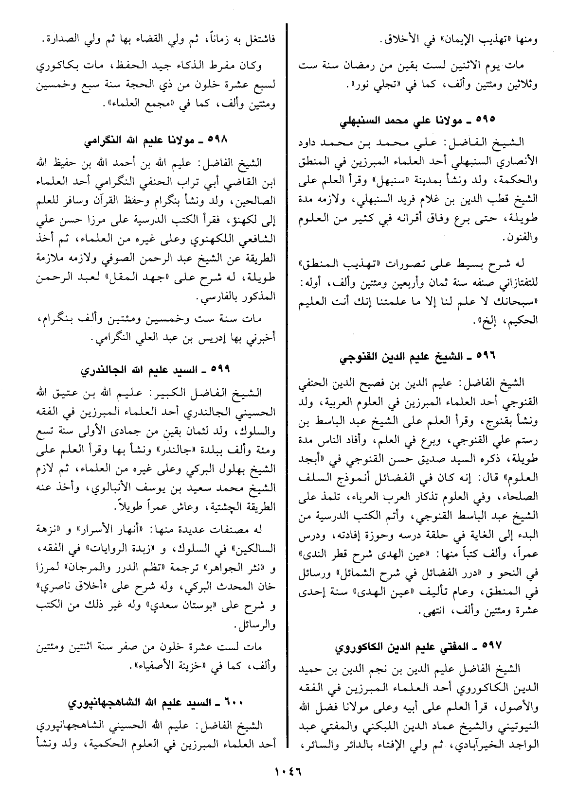 الشيخ الفاضل علي محمد بن محمد داود الأنصاري السنبهلي أحد العلماء المبرزين في المنطق