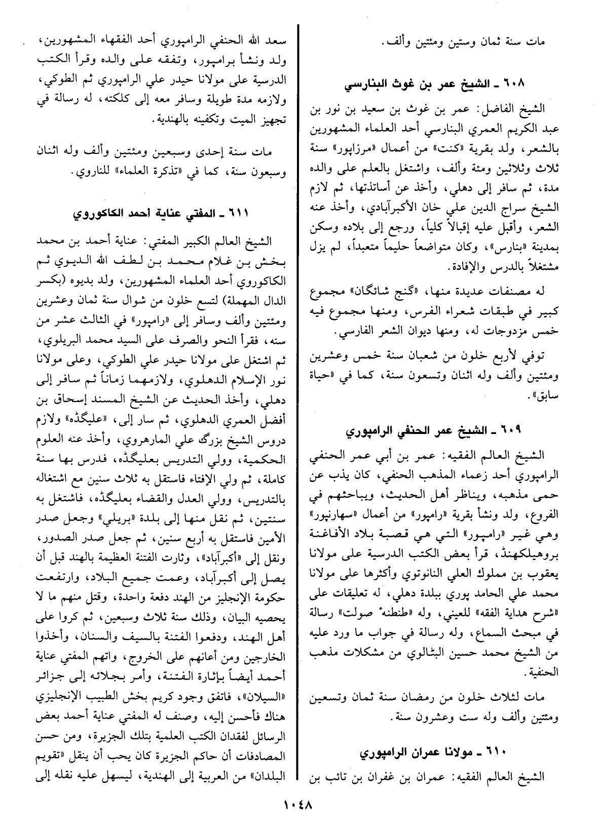 الشيخ الفاضل عمر بن غوث بن سعيد بن نور بن عبد الكريم العمري البنارسي أحد العلماء