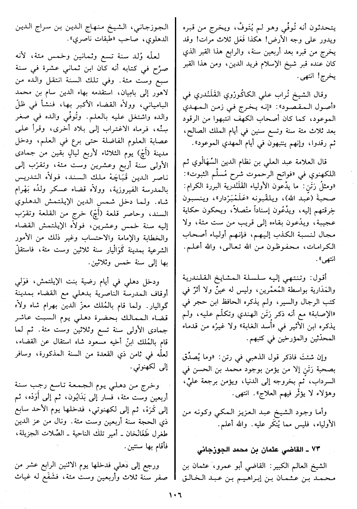 الخالق الجوزجاني الشيخ منهاج الدين بن سراج الدين الدهلوي صاحب طبقات ناصري،