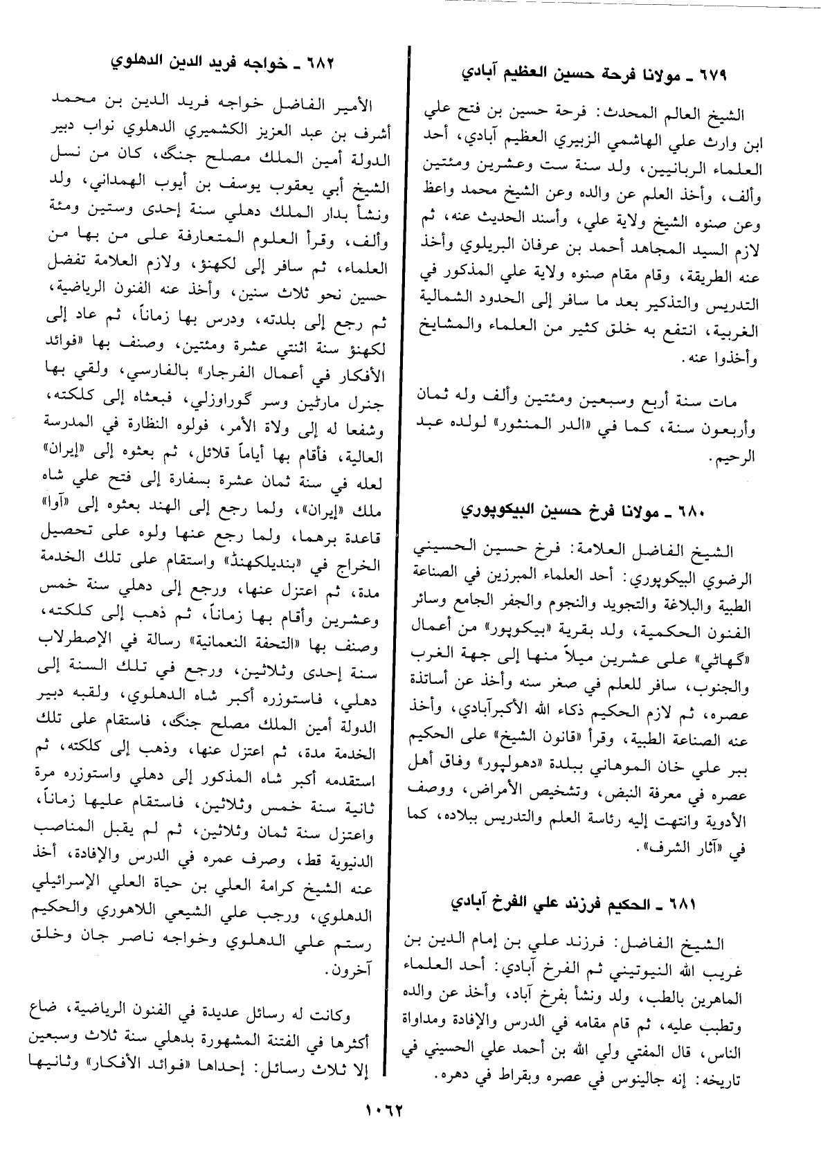 الماهرين بالطب، ولد ونشأ بفرخ آباد، وأخذ عن والده وتطبب عليه، ثم قام مقامه في الدرس والإفادة