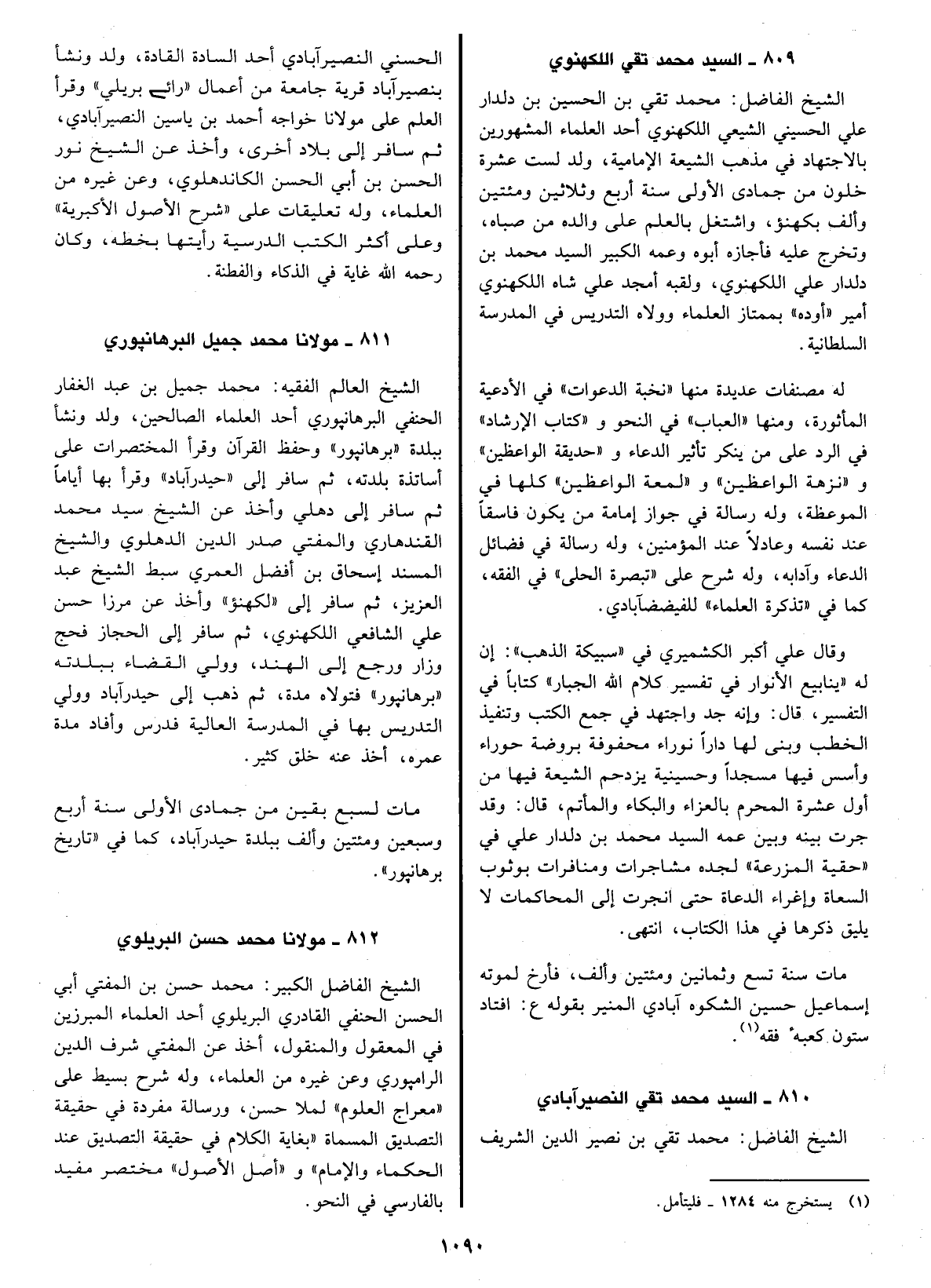 الشيخ الفاضل محمد تقي بن الحسين بن دلدار علي الحسيني الشيعي اللكهنوي أحد العلماء