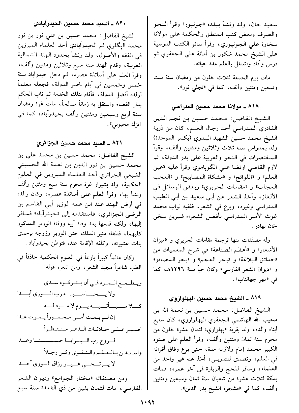 الشيخ الفاضل محمد حسين بن نعمة الله بن مجيب الله الهاشمي الجعفري البهلواروي، كان سابع