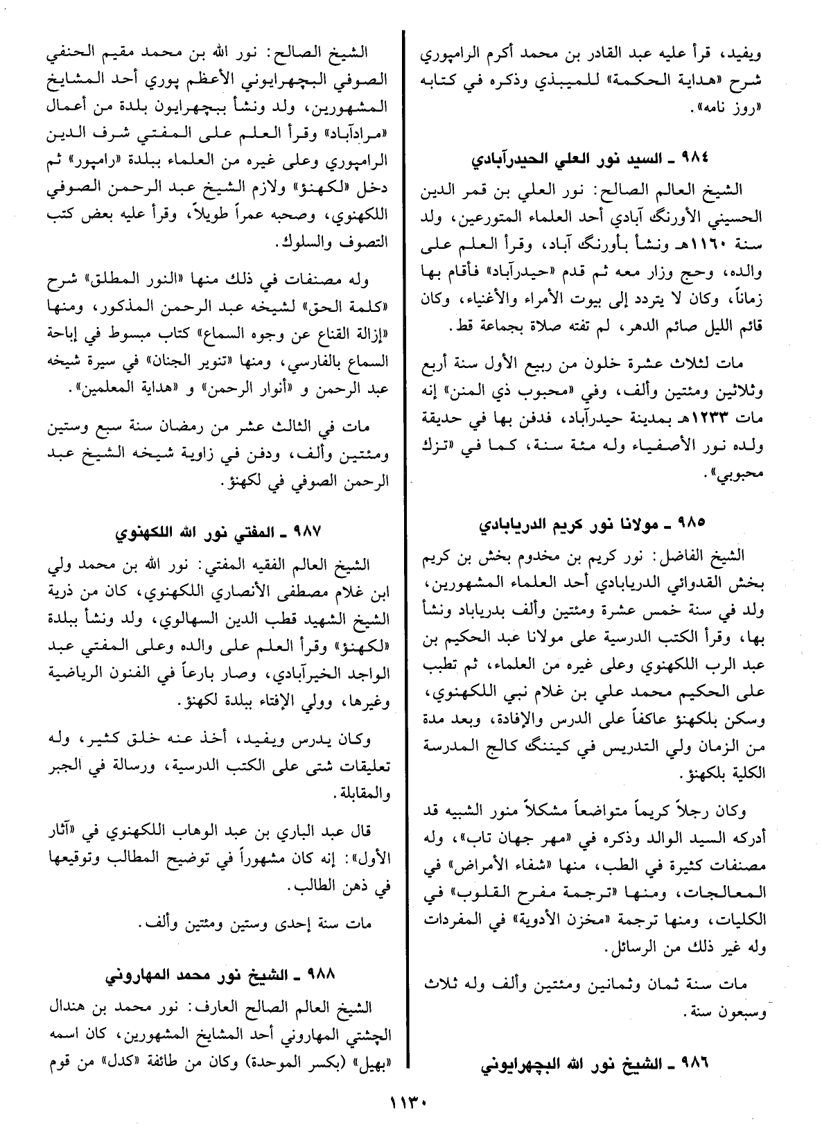 الشيخ العالم الفقيه المفتي نور الله بن محمد ولي بن غلام مصطفى الأنصاري اللكهنوي، كان من