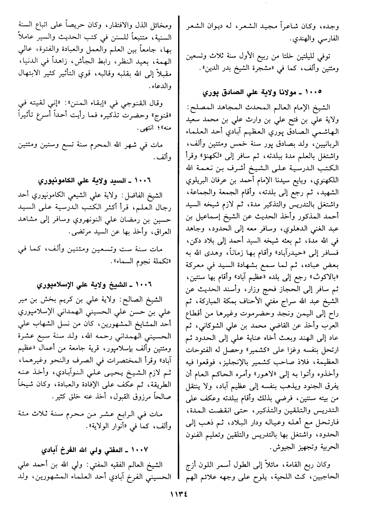 الشيخ العالم الفقيه المفتي ولي الله بن أحمد علي الحسيني الفرخ آبادي أحد العلماء المشهورين، ولد