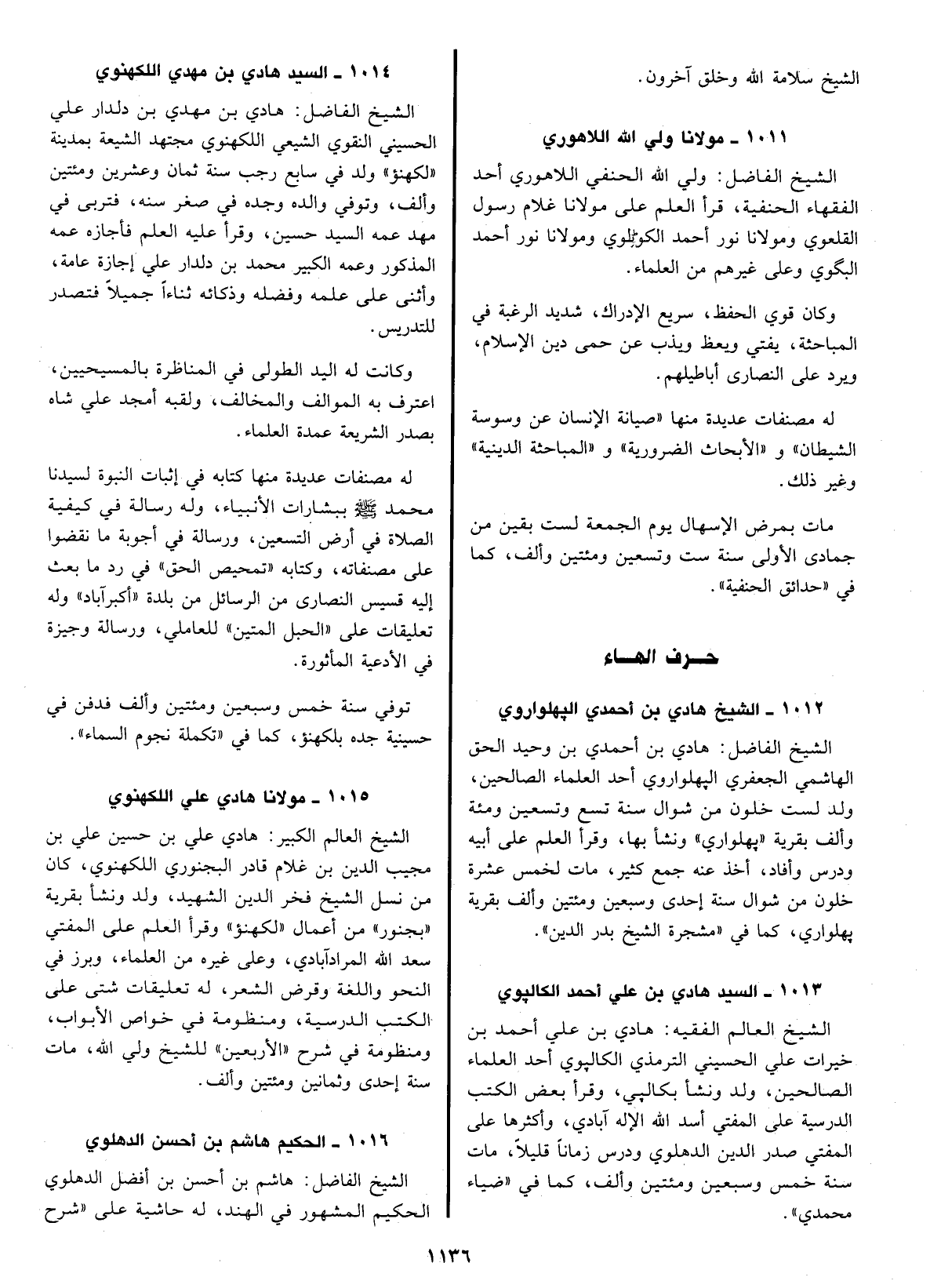 الشيخ الفاضل هادي بن أحمدي بن وحيد الحق الهاشمي الجعفري البهلواروي أحد العلماء