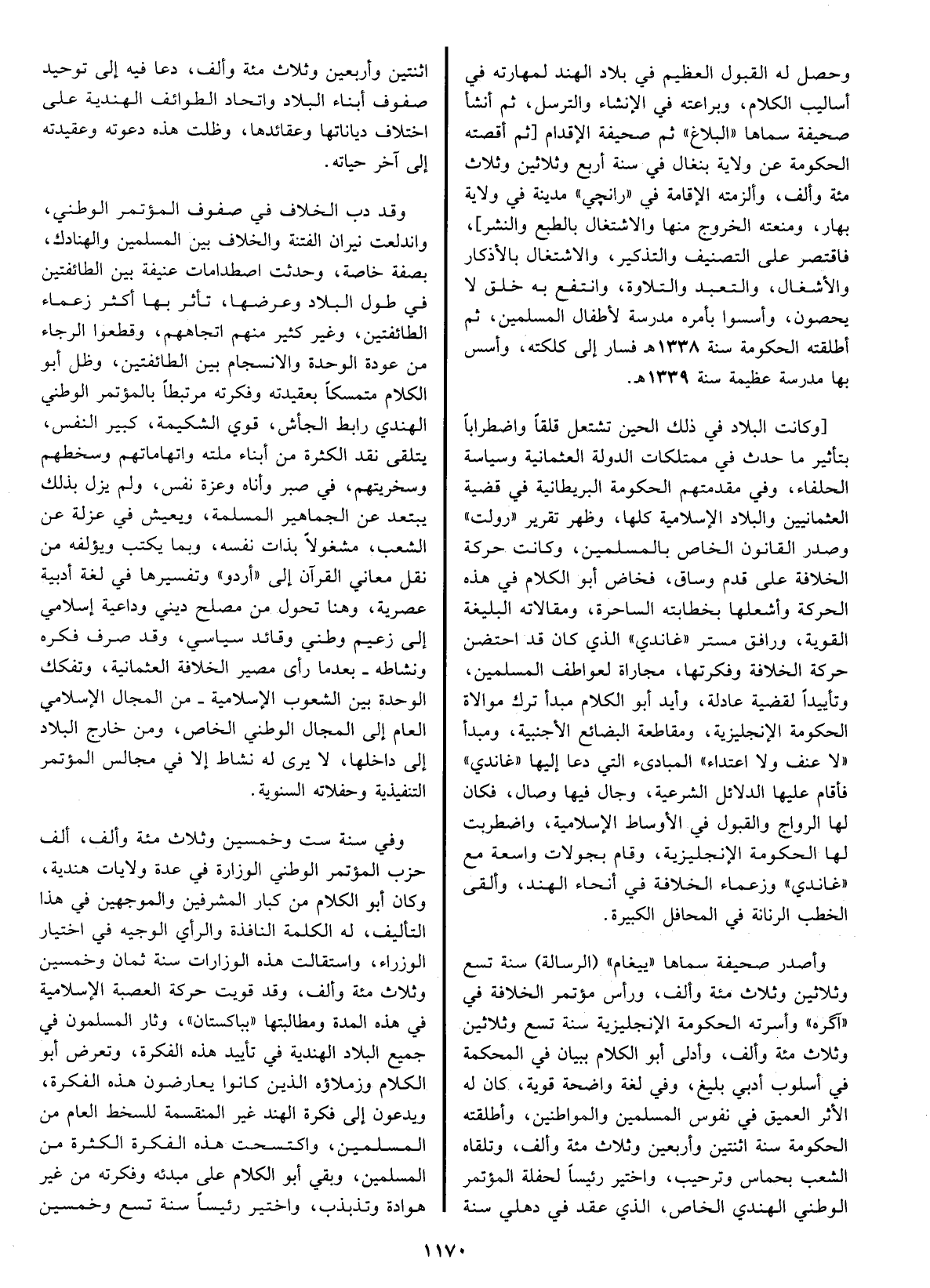 هندية، وكان أبو الكلام من كبار المشرفين والموجهين في هذا التأليف، له الكلمة النافذة والرأي
