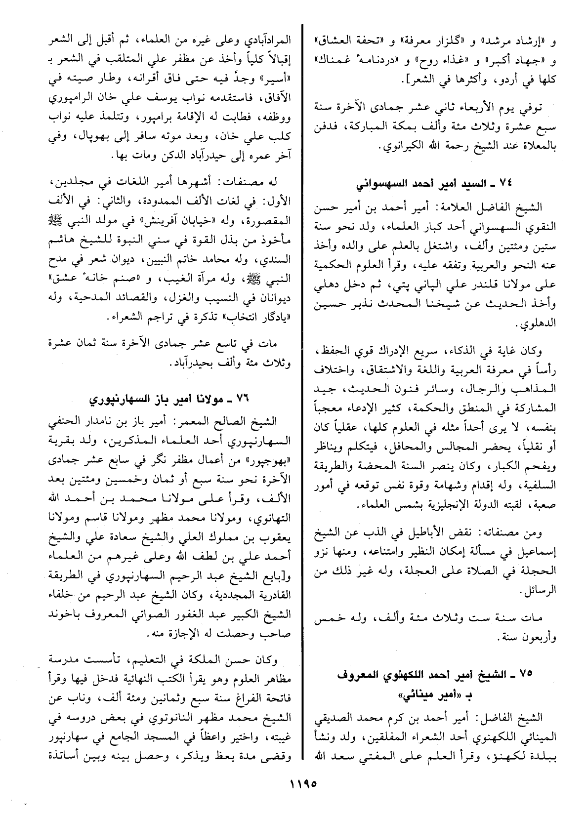 الشيخ الفاضل العلامة أمير أحمد بن أمير حسن النقوي السهسواني أحد كبار العلماء، ولد نحو سنة