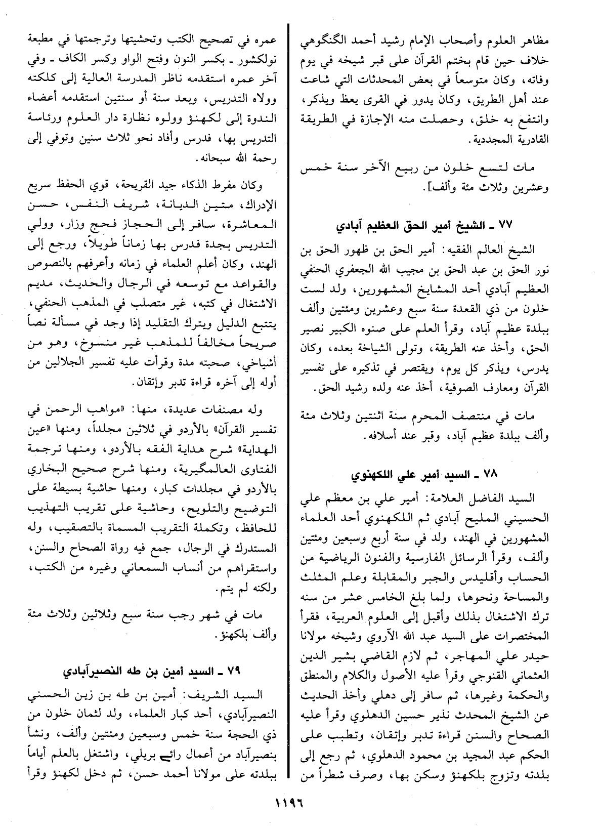 المشهورين في الهند، ولد في سنة أربع وسبعين ومائتين وألف، وقرأ الرسائل الفارسية والفنون