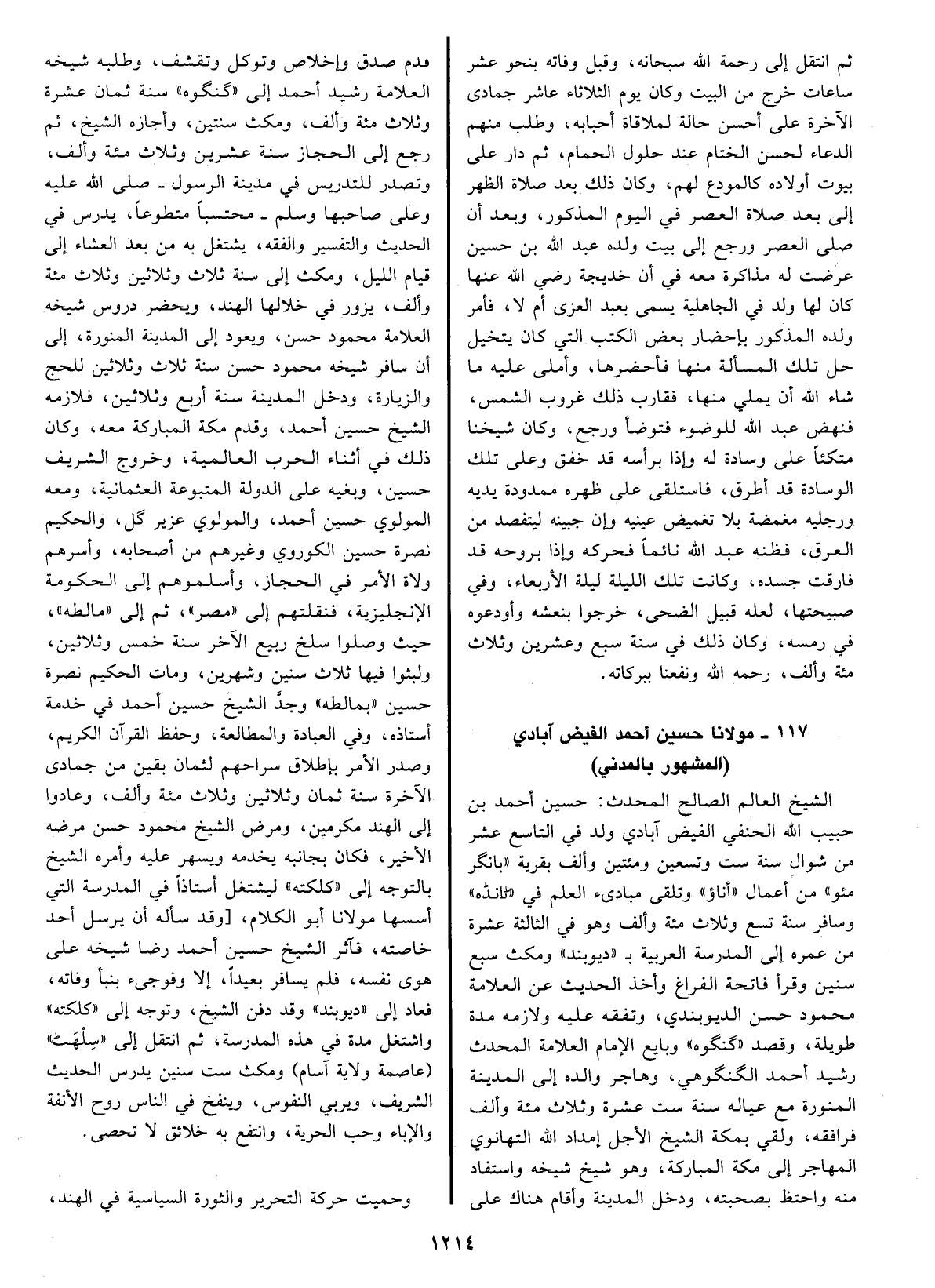 الشيخ العالم الصالح المحدث حسين أحمد بن حبيب الله الحنفي الفيض آبادي ولد في التاسع عشر