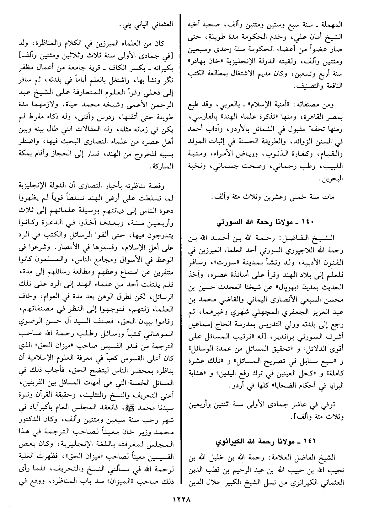 الشيخ الفاضل العلامة رحمة الله بن خليل الله بن نجيب الله بن حبيب الله ابن عبد الرحيم بن قطب