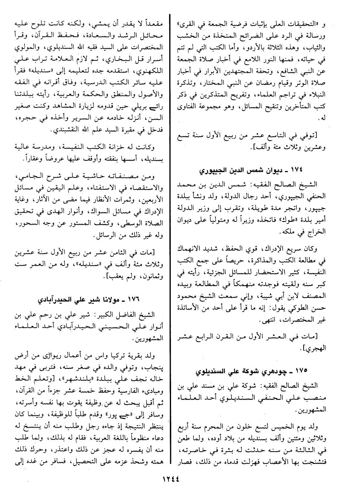 الشيخ الفاضل الكبير شير علي بن رحم علي بن أنوار علي الحسيني الحيدر آبادي أحد العلماء