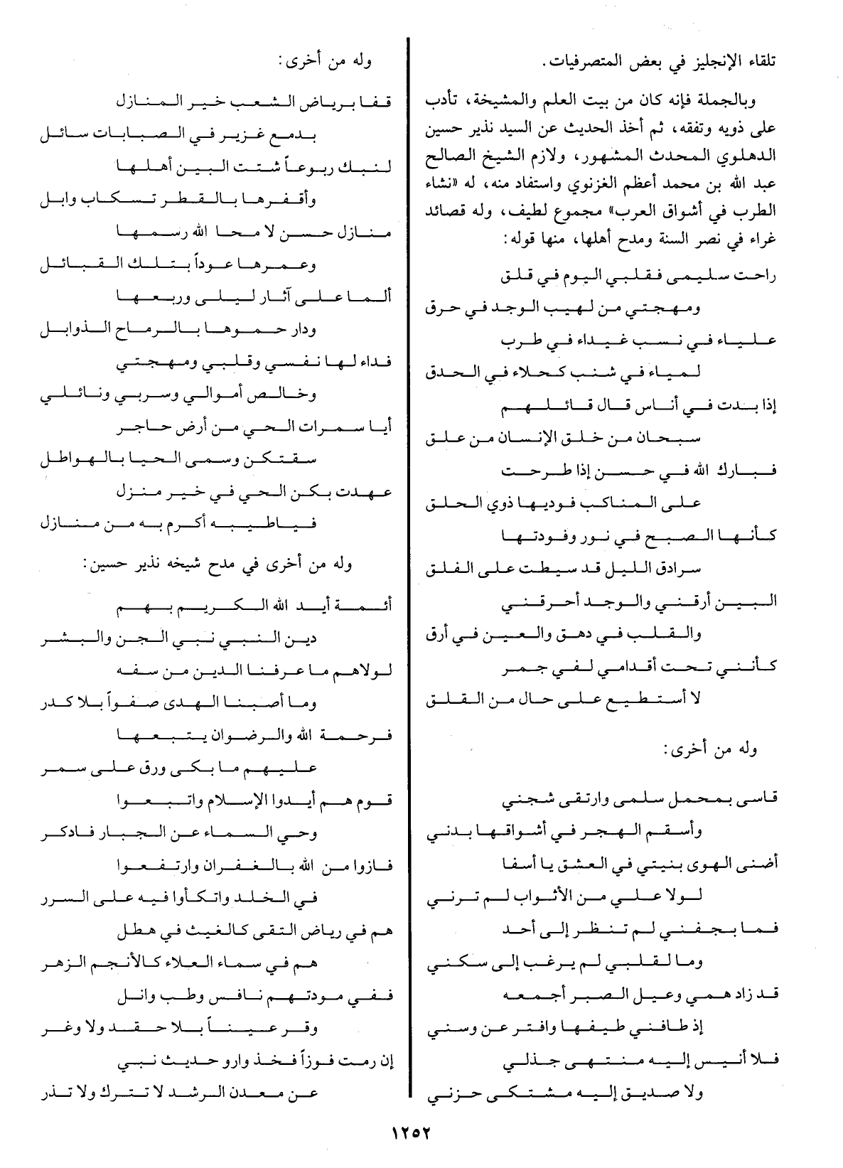 منه، له نشاء الطرب في أشواق العرب مجموع لطيف، وله قصائد غراء في نصر السنة ومدح