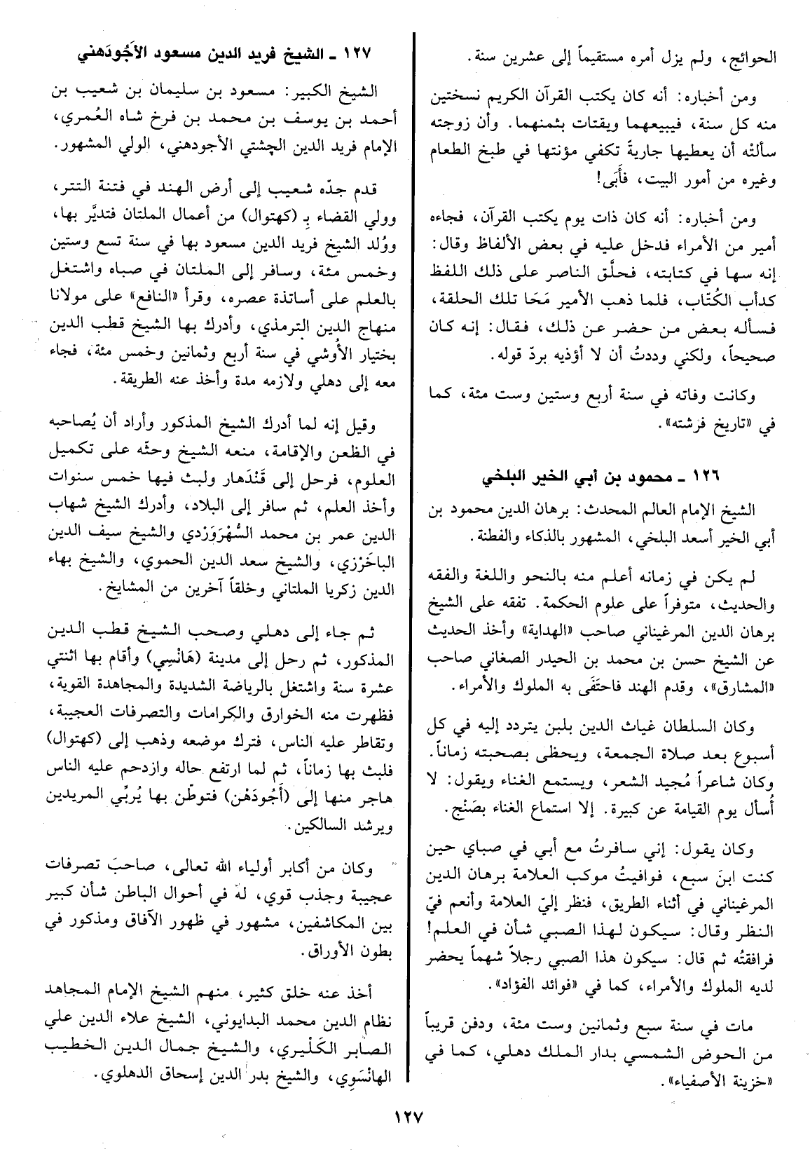 الدين مسعود بها في سنة تسع وستين وخمسمائة وسافر إلى الملتان في صباه واشتغل بالعلم