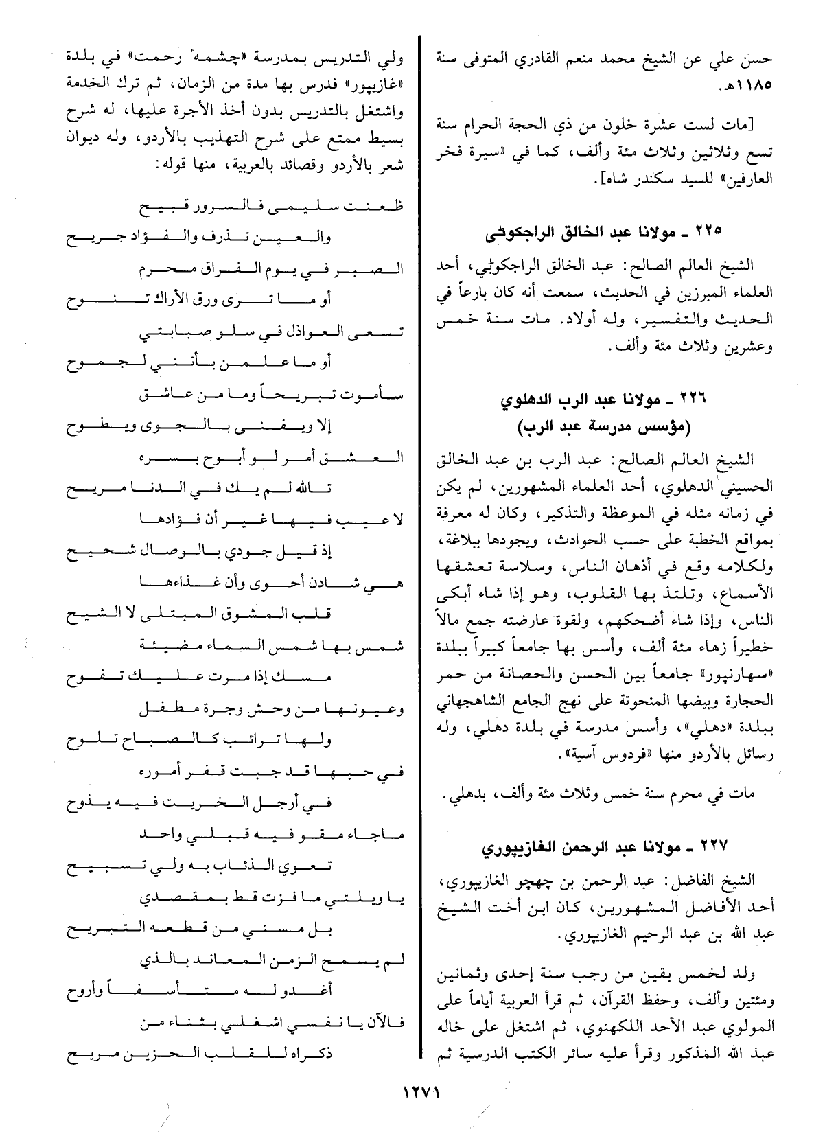 الشيخ الفاضل عبد الرحمن بن جهجو الغازيبوري، أحد الأفاضل المشهورين، كان ابن أخت الشيخ