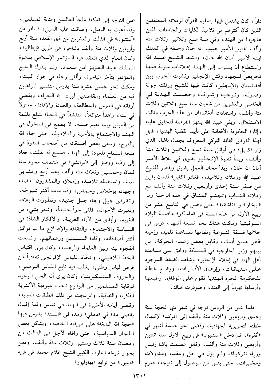 وثلاثين وثلاثمائة وألف، واستفادت أفغانستان من هذه الحرب ونالت الاستقلال، وبقي عبيد الله ينتهز