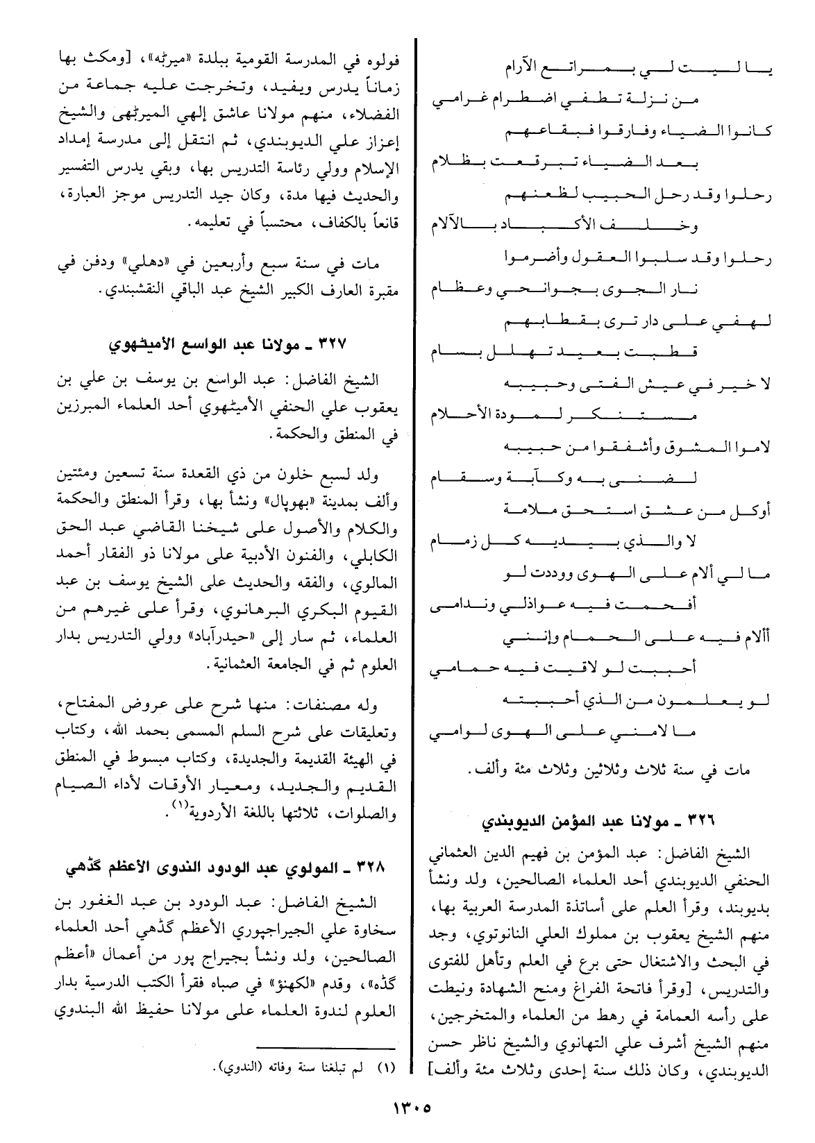 أشرف علي التهانوي والشيخ ناظر حسن الديو بندي، وكان ذلك سنة إحدى وثلاثمائة وألف فولوه في