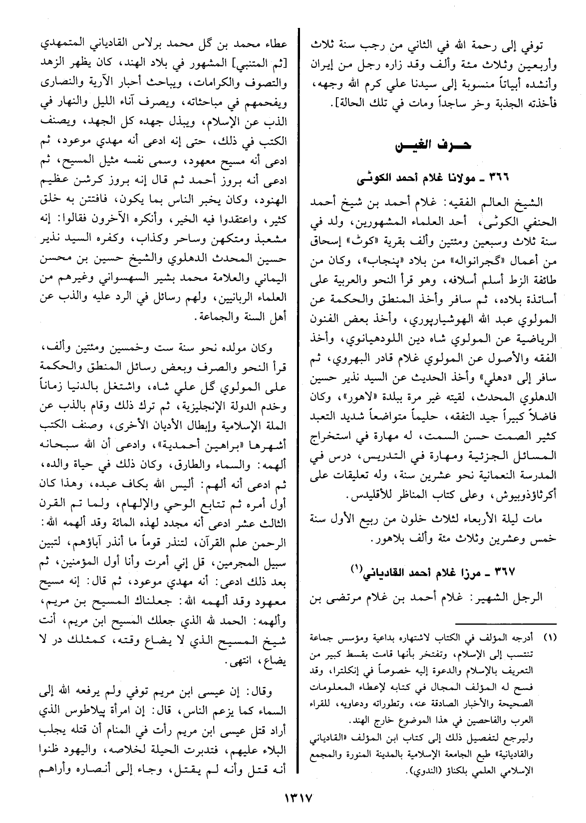 الشيخ العالم الفقيه غلام أحمد بن شيخ أحمد الحنفي الكوثي، أحد العلماء المشهورين، ولد في سنة