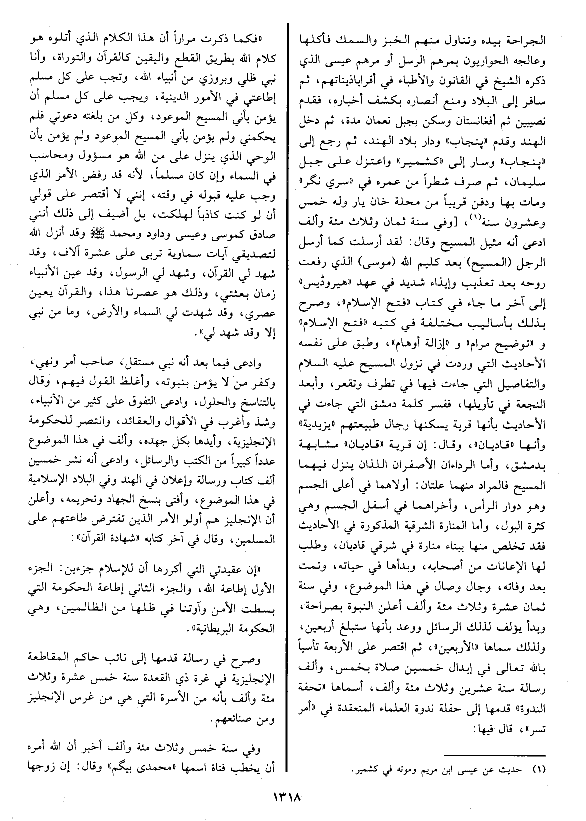 وثلاثمائة وألف أعلن النبوة بصراحة، وبدأ يؤلف لذلك الرسائل ووعد بأنها ستبلغ أربعين، ولذلك