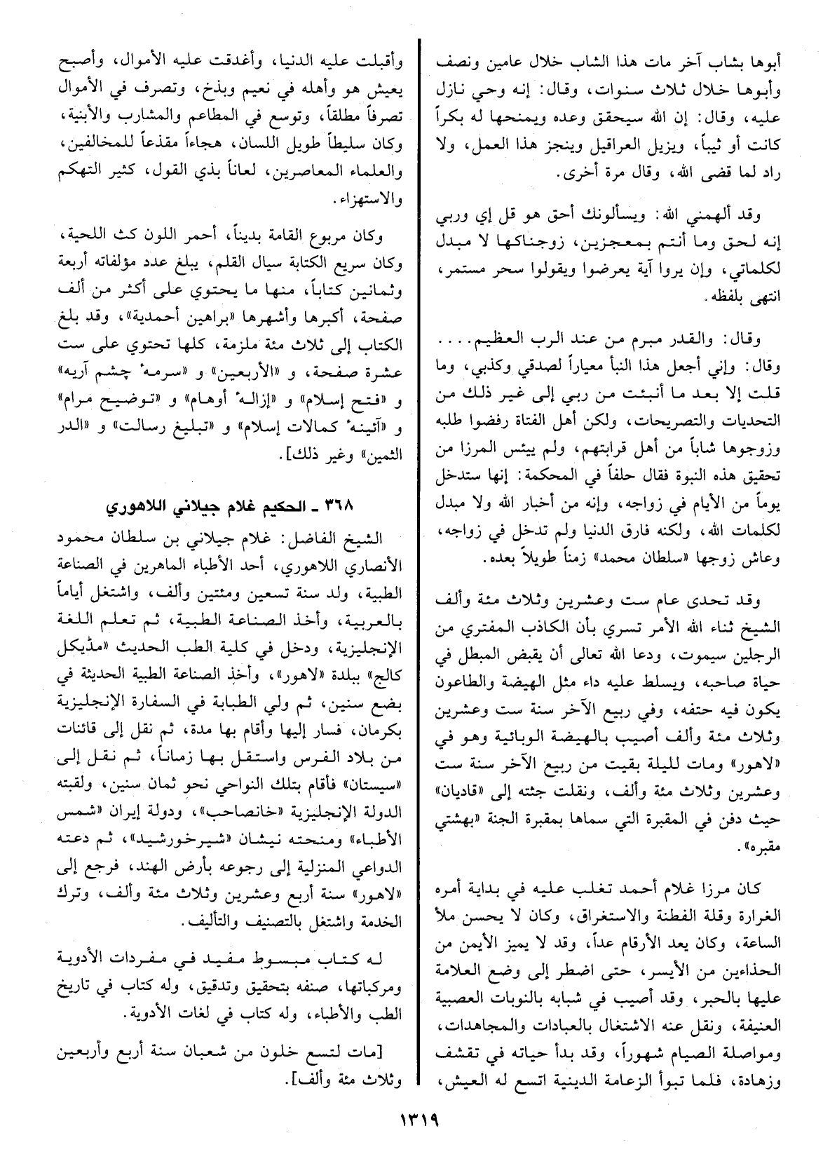 الشيخ الفاضل غلام جيلاني بن سلطان محمود الأنصاري اللاهوري، أحد الأطباء الماهرين في