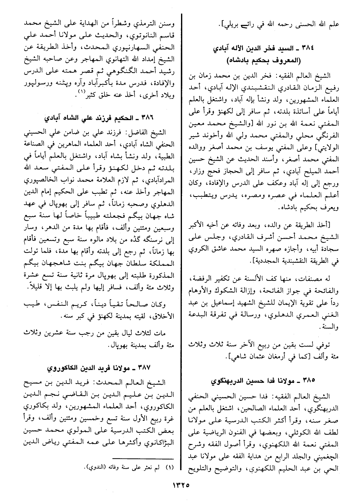 الشيخ العالم الفقيه فخر الدين بن محمد زمان بن رفيع الزمان القادري النقشبندي الإله آبادي، أحد