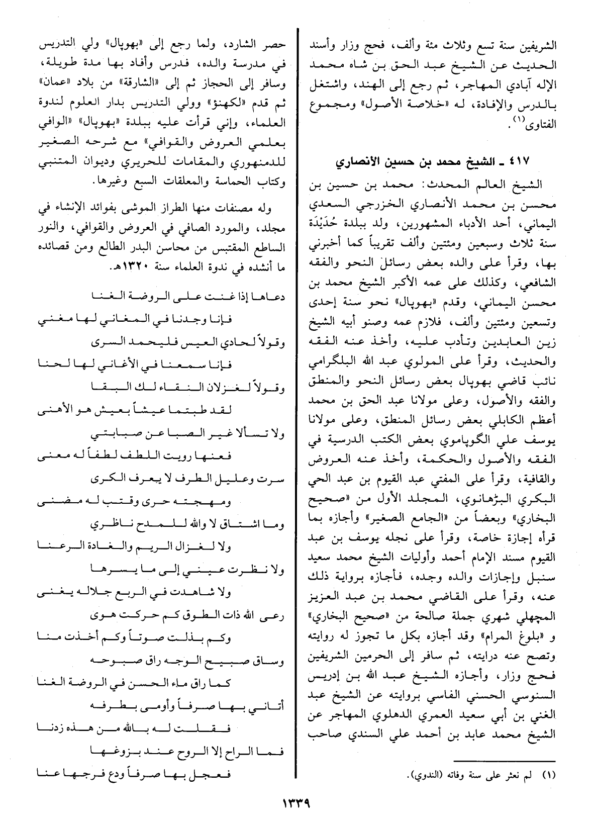 لكهنؤ وولي التدريس بدار العلوم لندوة العلماء، وإني قرأت عليه ببلدة بهوبال الوافي بعلمي العروض