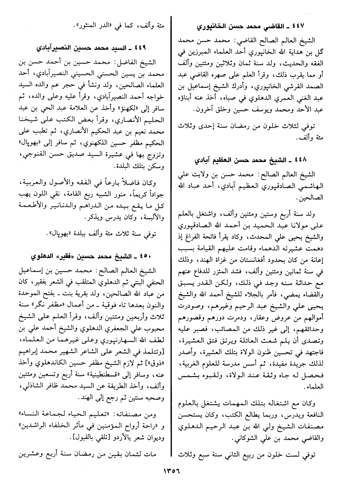 الشيخ العالم الصالح القاضي محمد حسن بن محمد كل بن هداية الله الخانبوري أحد العلماء المبرزين