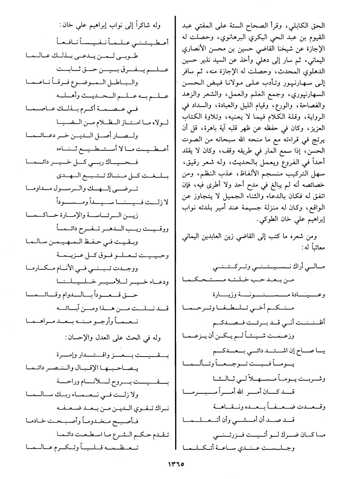 ومن شعره ما كتب إلى القاضي زين العابدين اليماني معاتباً له: