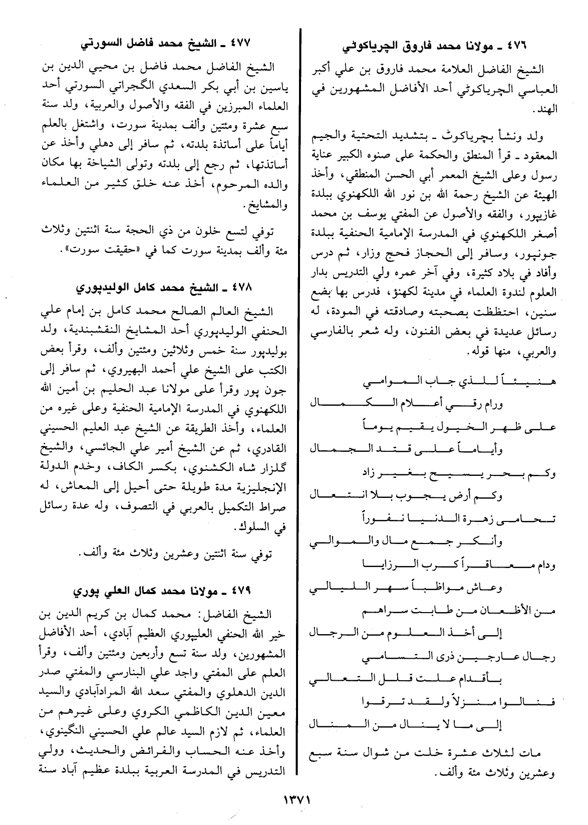 الشيخ الفاضل العلامة محمد فاروق بن علي أكبر العباسي الجرياكوثي أحد الأفاضل المشهورين في