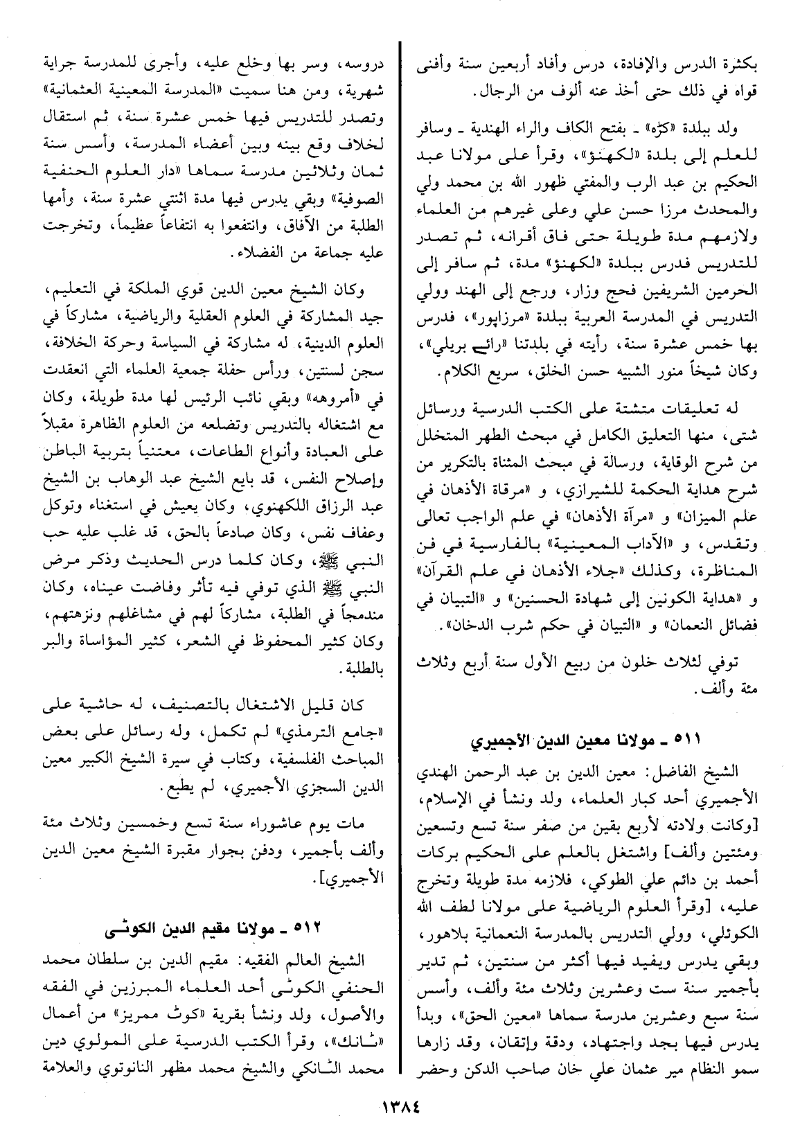 الشيخ الفاضل معين الدين بن عبد الرحمن الهندي الأجميري أحد كبار العلماء، ولد ونشأ في