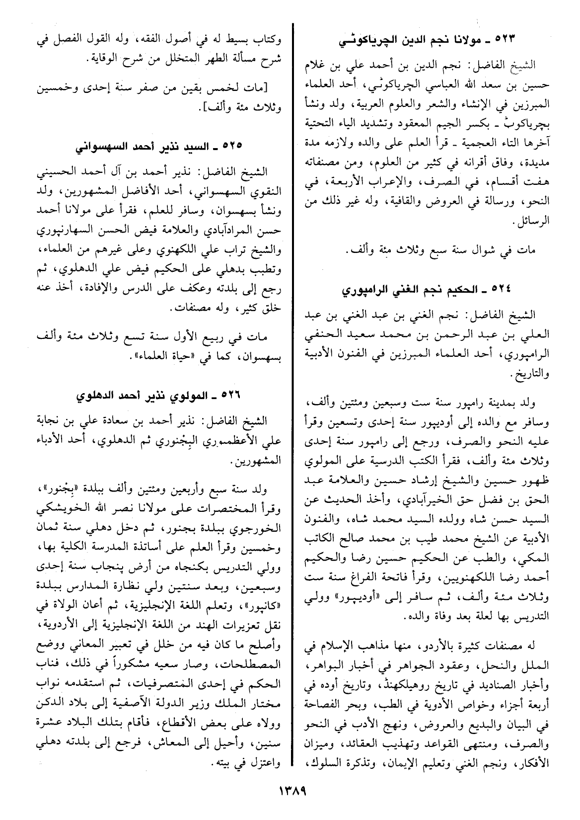 الشيخ الفاضل نذير أحمد بن آل أحمد الحسيني النقوي السهسواني، أحد الأفاضل المشهورين، ولد