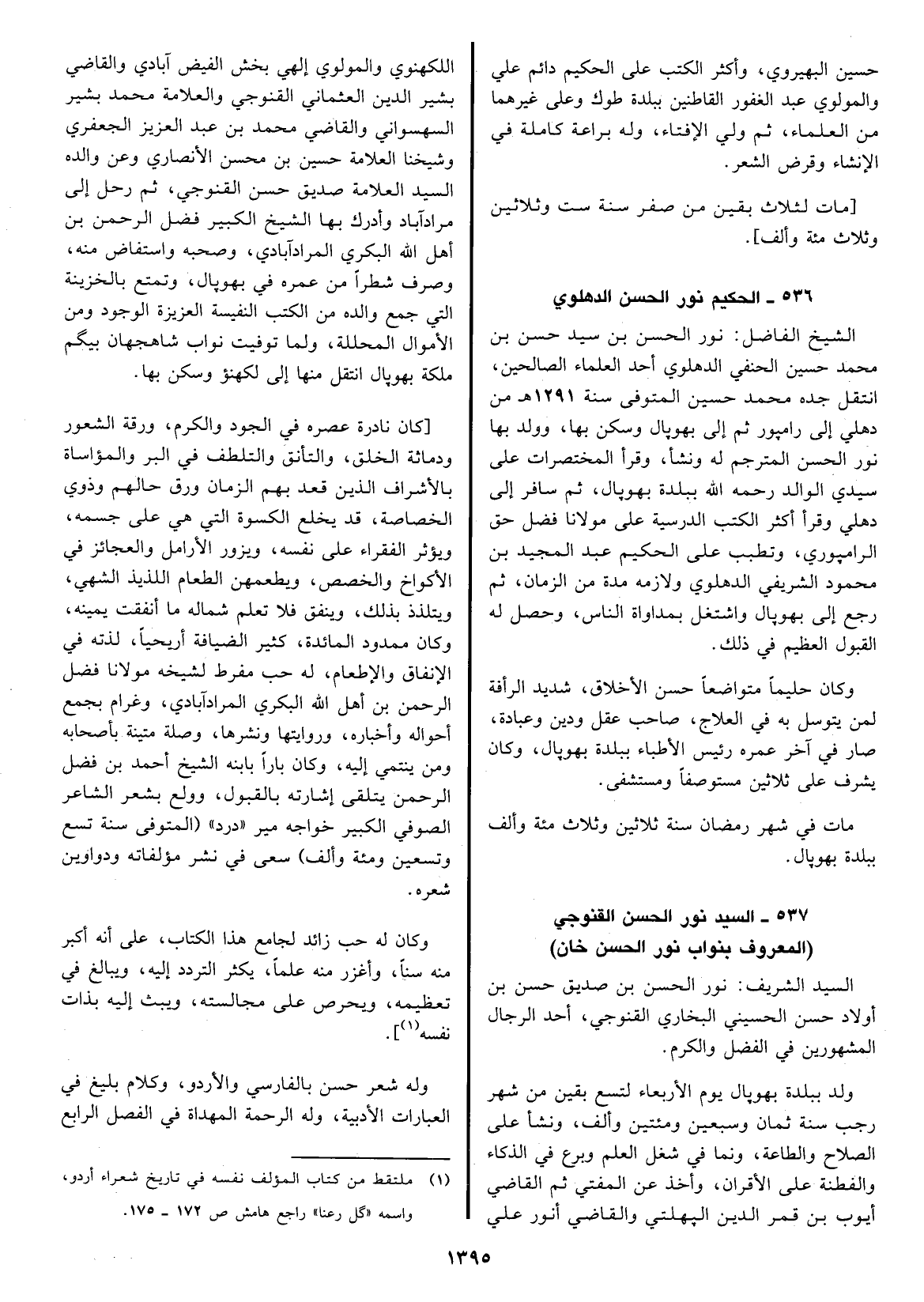الشيخ الفاضل نور الحسن بن سيد حسن بن محمد حسين الحنفي الدهلوي أحد العلماء الصالحين،